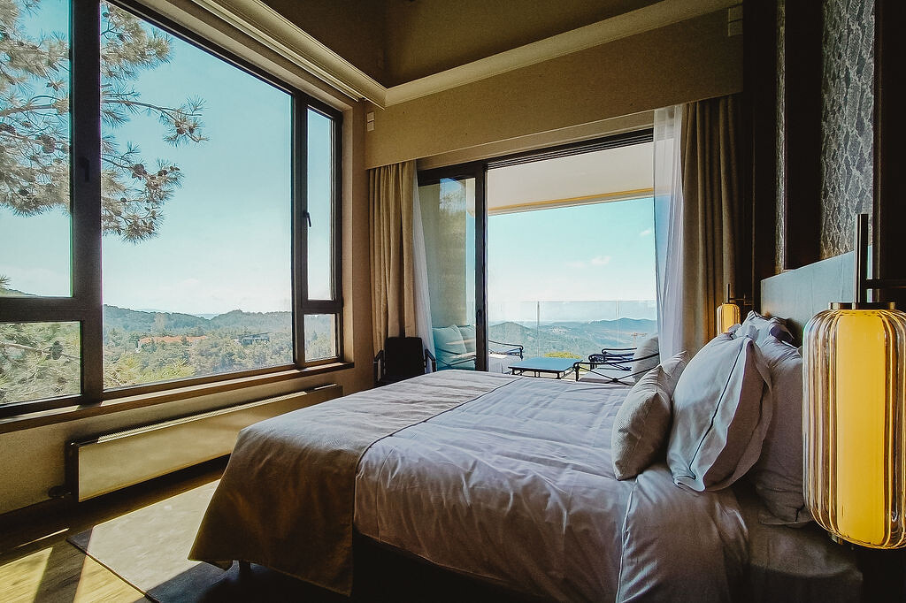 From the windows, guests can enjoy panoramic views of the Troodos Mountains — fresh air, the rustle of pine needles, and the babbling of mountain streams create a natural atmosphere of tranquility.